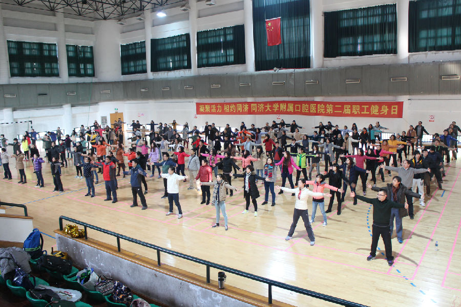 12月14日,伟德victor1946官网登录第二届职工健身日在伟德victor1946官网登录南校区体育馆隆重举行,全院教职工近200人参与活动,场面十分热烈。活动开场由伟德victor1946官网登录体育部的老师带领全体人员学做“养身操”,教职工们个个聚精会神,动作到位,使身体充分舒展,缓解平日工作的劳累。
