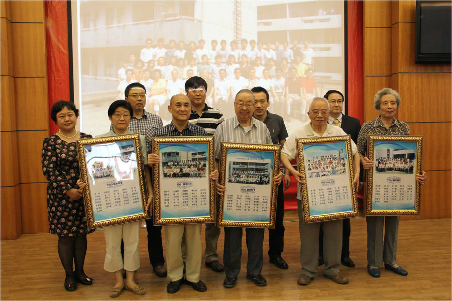 接下来,从1990届到2014届的校友代表们向母校捐赠校友墙,接牌嘉宾为各届的教师代表,校友墙牌匾上印着每届毕业的学子的合照,记载着他们的青春,也记载着伟德官网的蓬勃发展。邱蔚六院士、石四箴教授、吴少鹏教授代表老教师接受了校友们的献花,并发表即兴感言,对学院今后的发展寄予深切的期望。