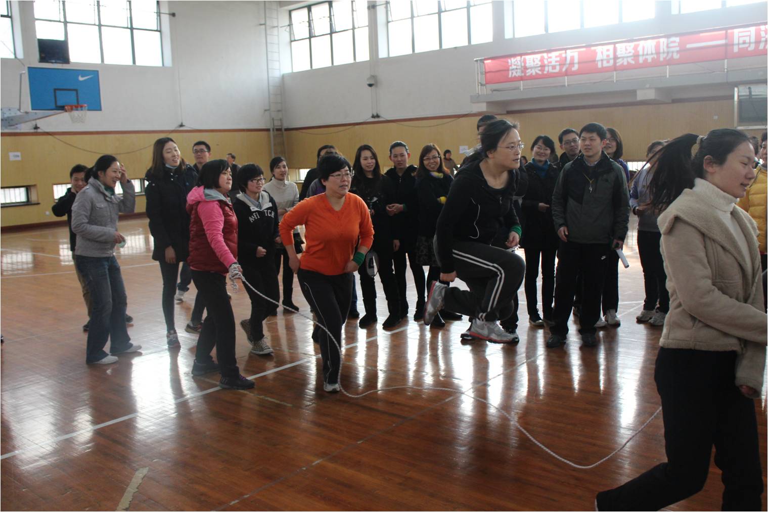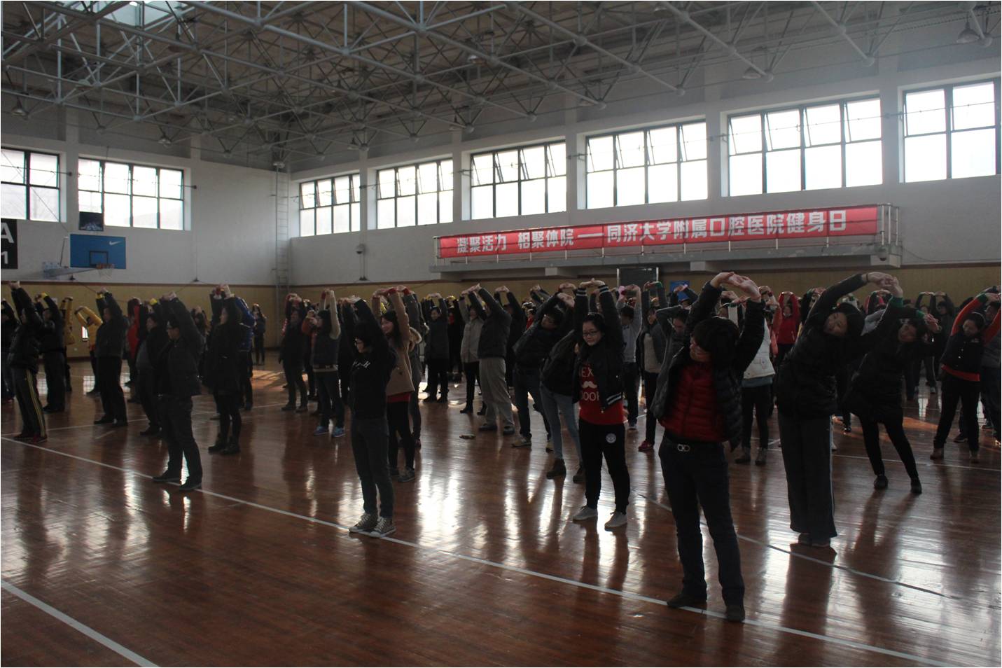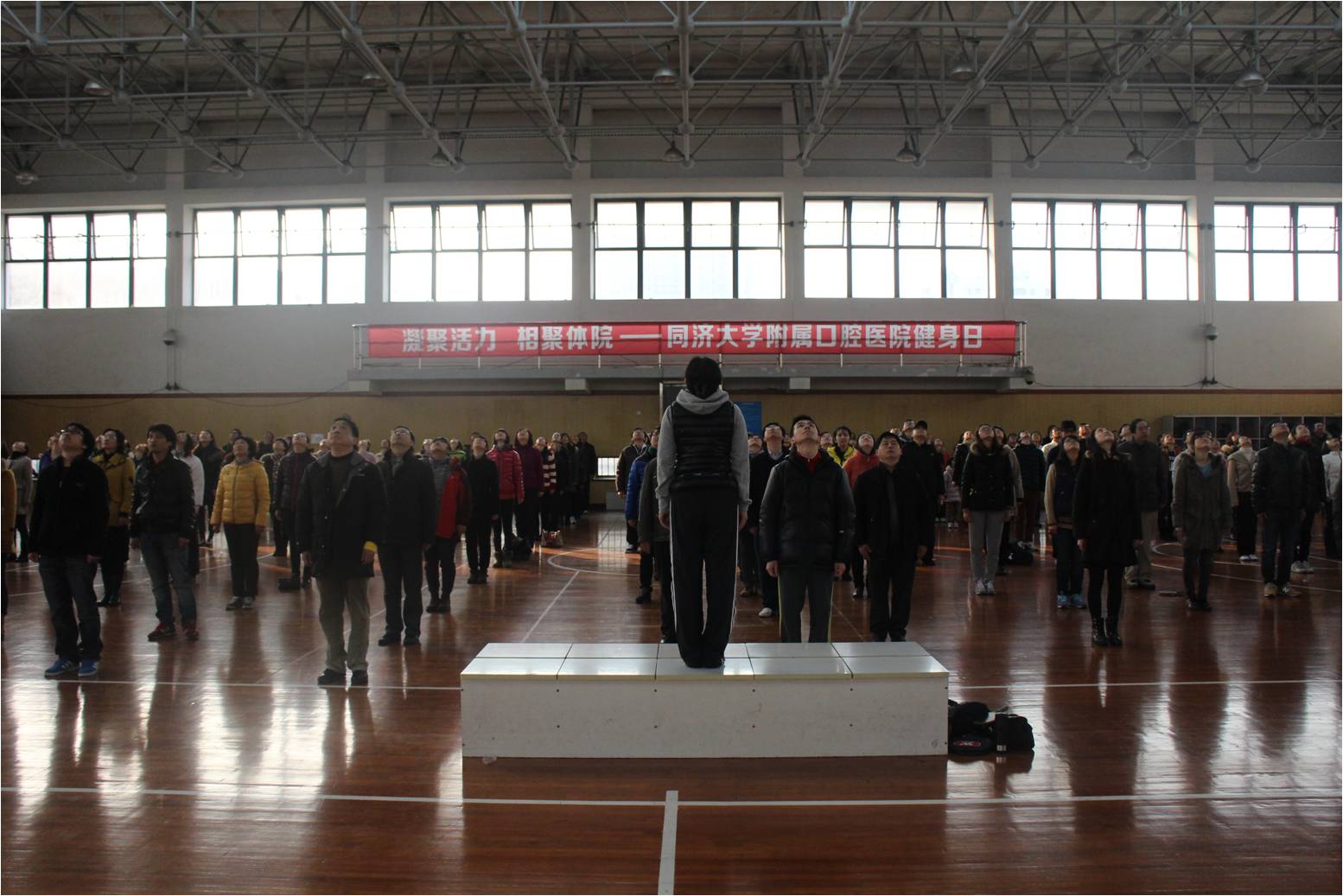 1月5日,伟德victor1946官网登录2014年职工健身日在上海市体育学院隆重举行,全院教职工近200人参与活动,场面十分热烈。活动开场由上海市体育学院的老师带领全体人员学做“颈椎操”,教职工们个个聚精会神,动作到位,使身体充分舒展,缓解平日工作的劳累。