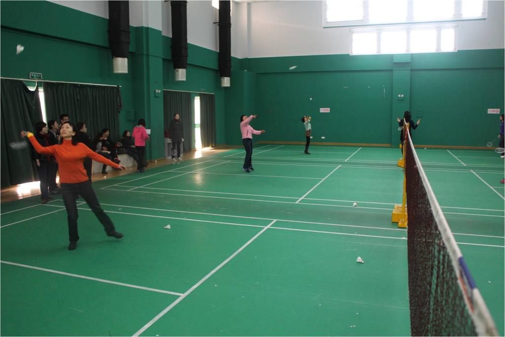 随后健身日正式拉开帷幕,此次活动以小组赛的形式进行,参赛职工根据科室分为红黄蓝绿四队,比赛分为团体项目和个人单项,其中团体项目包括拔河、八人九足、跳长绳、篮球、排球;个人单项包括羽毛球、乒乓球、呼拉圈、踢毽子。各小组按照比赛项目要求,选派人员参赛,并根据名次计算积分决定最终小组排名。