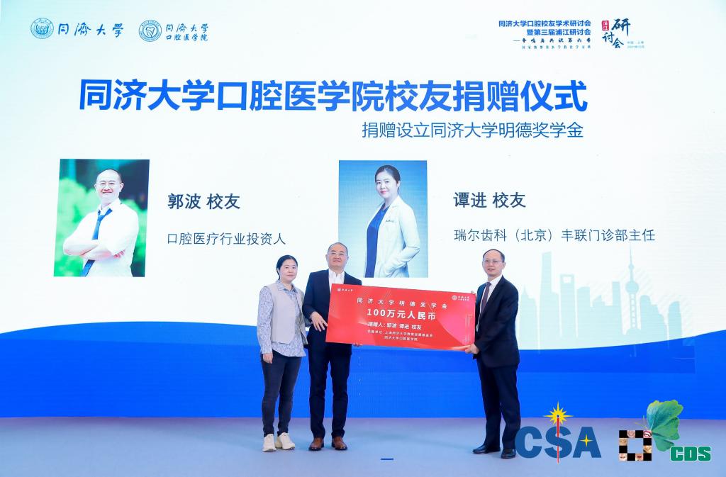 开幕式上还进行了伟德victor1946官网登录奖学金捐赠仪式,校友王丽娟、郭波、谭进三人共向口腔医学院捐赠了200万元,设立伟德victor1946官网登录“百合“、“明德”奖学金,用于奖励品学兼优的口腔学子们。冯身洪常务副书记代表大学接受了捐赠并在开幕式上讲话,他表示伟德victor1946官网登录将进一步在资源拓展、学科建设方面给予同济口腔鼎力支持,并祝愿同济口腔蒸蒸日上。