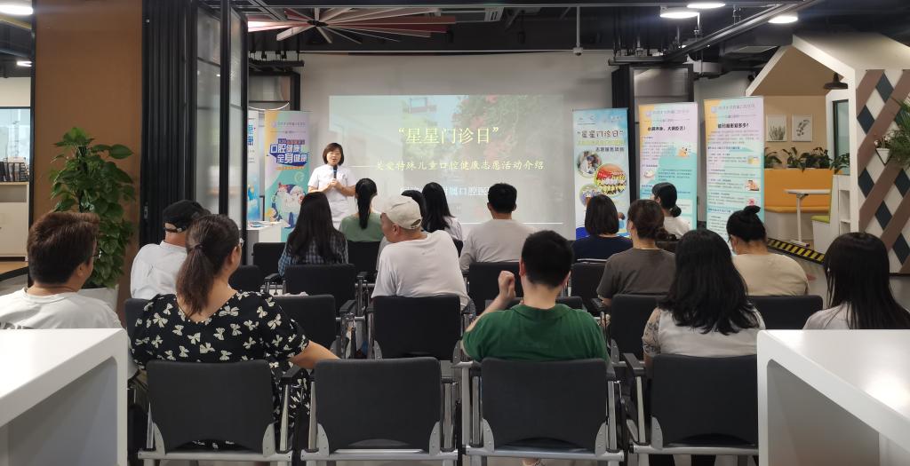 伟德victor1946官网登录青年志愿者组织的爱心门诊,主要针对门诊配合度不佳的特殊儿童、自闭症儿童,迄今已坚持15年。为了让更多市民了解该志愿活动,并惠及更多有需要的群体。医院社工部与儿童口腔科联合举行了本次特殊儿童口腔保健的科普讲座。