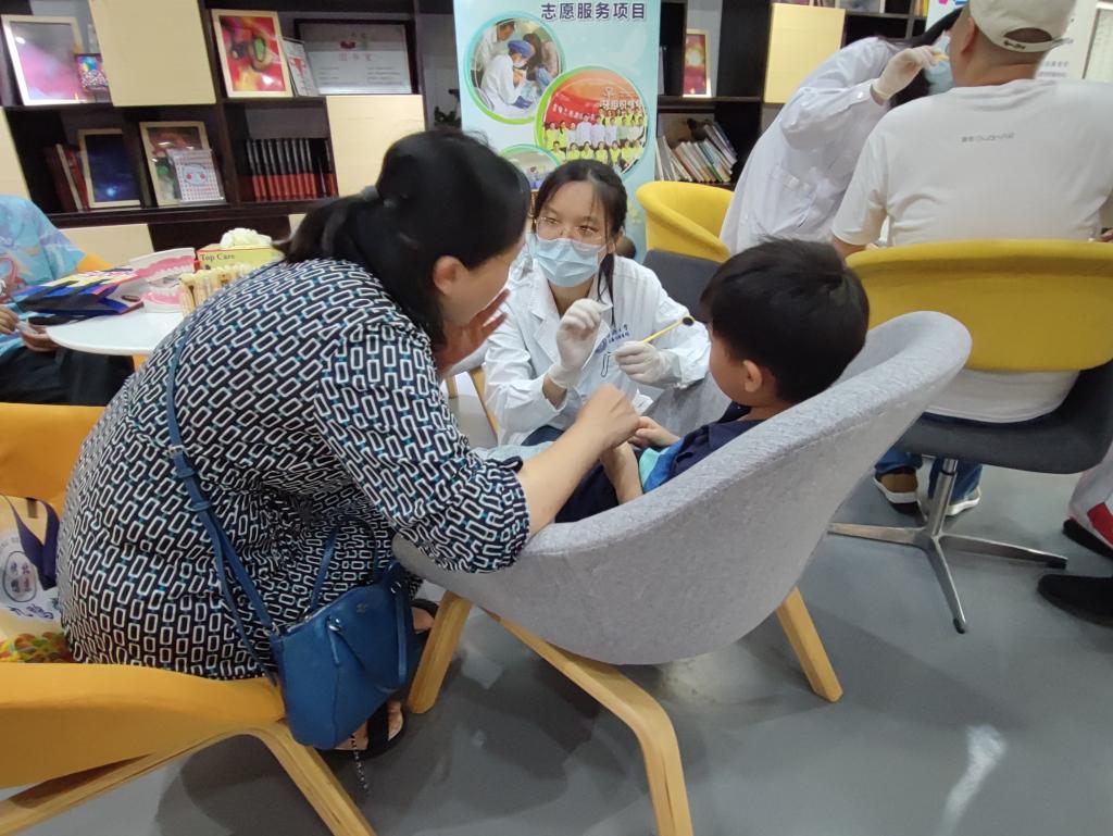 讲座结合特殊儿童的日常特点,进行了详细的日常口腔保健指导,并就特殊儿童常见的临床配合困难及行为诱导问题,介绍了既往经验。活动还提供了现场口腔检查评估,参加活动的小朋友非常开心地与志愿者互动做游戏,由一开始的躲避口镜到配合地张嘴检查,成功迈出第一步。家长们欣喜地表示,活动进一步提振了自己帮助孩子接受正常口腔治疗的信心,非常期待孩子在后续爱心门诊的表现。活动后,需要进一步口腔诊疗的特殊儿童,都成功预约了后续公益性“星星门诊日“的爱心门诊。
