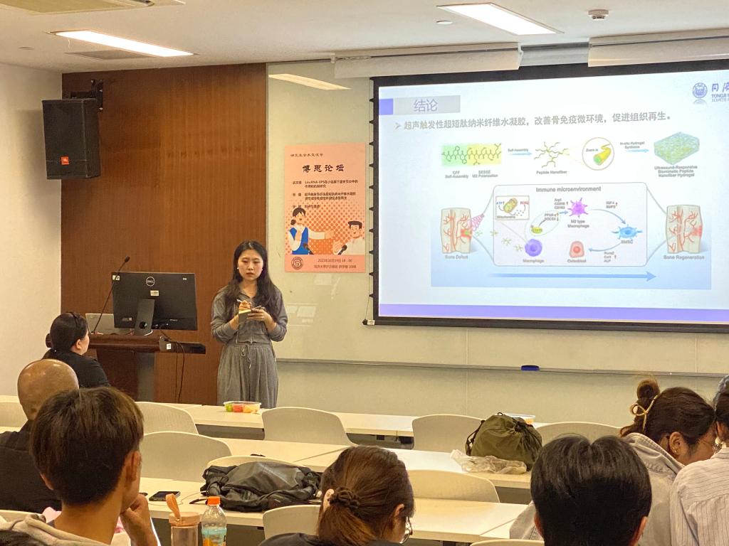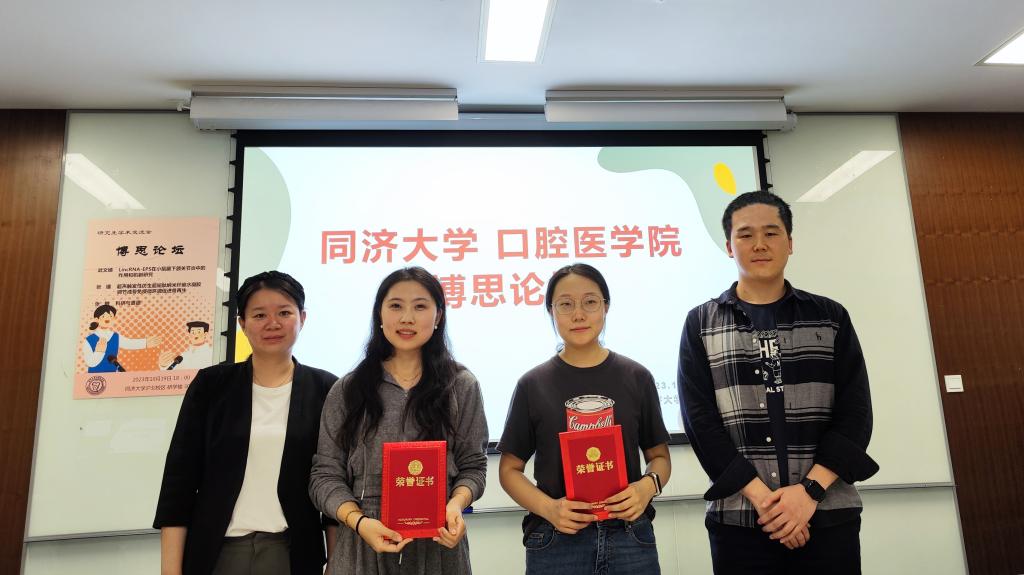 本次论坛邀请到伟德victor1946官网登录口腔医学院的2020级博士研究生武文婧和2019级博士研究生张璠,分别就“LincRNA-EPS在小鼠颞下颌关节炎中的作用和机制研究”、“超声触发性仿生超短肽纳米纤维水凝胶调节成骨免疫微环境促进骨再生”,分享汇报了个人优秀科研成果。口腔医学院教学办主任、牙体牙髓教研室周玥老师,口腔颌面外科教研室王璨老师,口腔医学院研究生辅导员、口腔种植教研室张敏老师作为点评嘉宾出席。口腔医学院全体研究生积极参与,在现场交流了科研经验及心得体会。