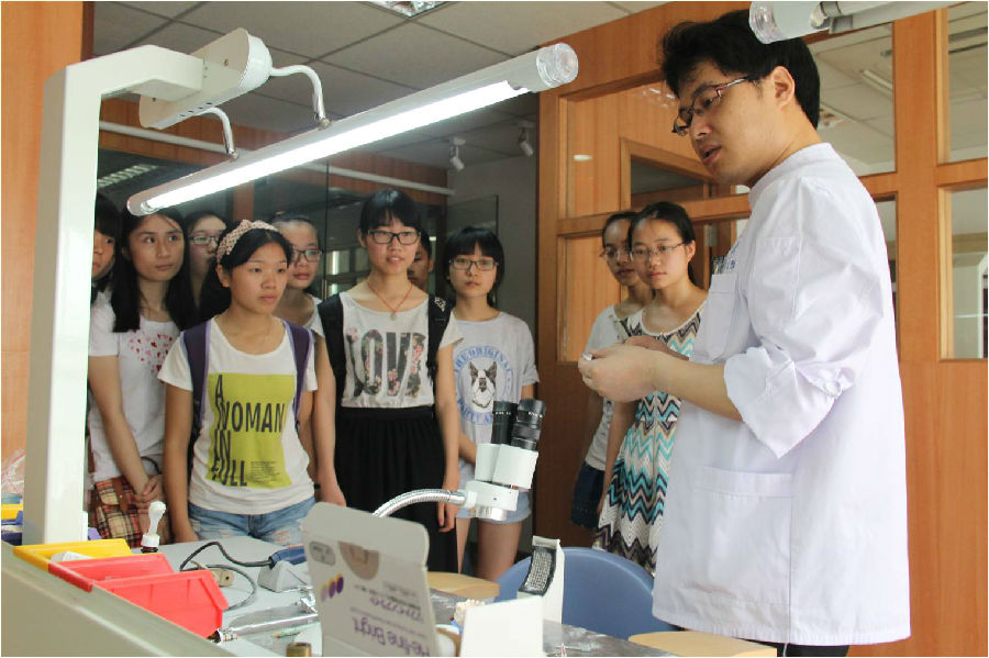 上午9点左右,在冯老师田同学的热情迎接下,我们一行人来到伟德victor1946官网登录口腔医学院。在两位师姐的带领下,我们参观了同济医学院的实验室,看到了各种实验设备,如细胞培养房,超低温冰箱,高温灭菌锅等等。在实验室里,我们看到了老师指导同学们在认真仔细的实验过程,让我们能提前感受到科研氛围。而后我们又来到口腔医院,在口腔修复科刘教授的带领下,参观了口腔技工操作室。丰富的材料,先进的仪器及精细熟练的技术都表明一副假牙的完成绝非易事。随后,两位师姐和冯老师带着我们去各个科室参观,科室布置的干净整洁,每一位医生对待病人都亲切负责,我们深深感受到作为口腔医生肩负着的为减轻病人伤痛,服务于病人的重大责任。伟德victor1946官网登录附属口腔医学院以儿童口腔科见长,温馨可爱的儿童诊室,耐心的医生与活泼可爱的孩子们成为伟德victor1946官网登录口腔医院不同于其他医院的一大特色。最后我们参观了伟德victor1946官网登录大五学生实习所在的口腔综合科,大五学生从理论到实践的过程也将是我们的必经之路。